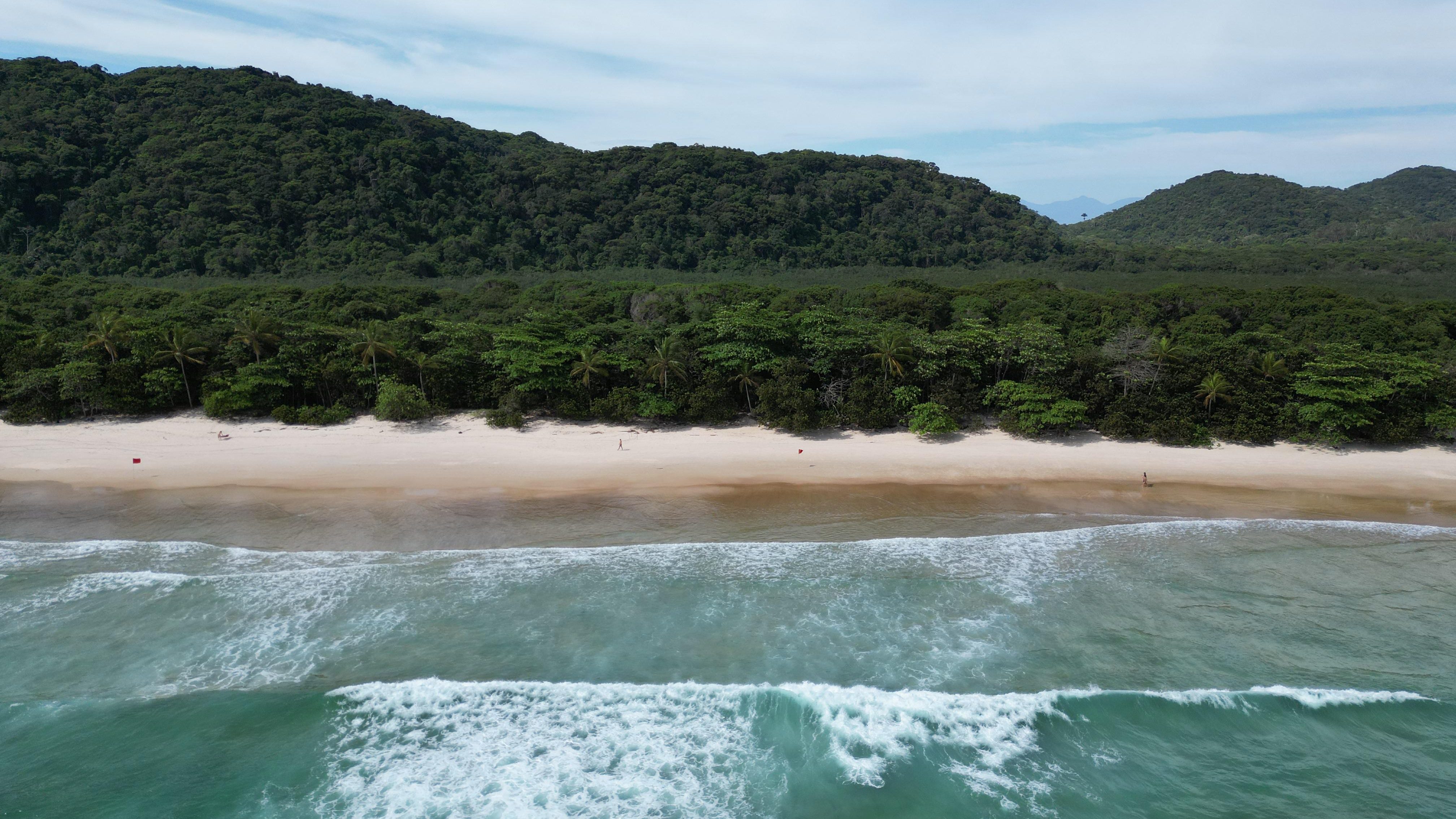 Heute haben wir die Wanderung von unserem Ort, Abraão (der Hauptort der Insel), zum Strand Lopes Mendes gemacht. Sie ging etwa zweieinhalb Stunden, fast durchgehend durch den Wald, auf die Südseite der Insel zu einem der schönsten Strände der Ilha Grande. Die Wanderung zog sich zwar (über 7km und 330 Höhenmeter einfach), aber wir haben wieder kleine Äffchen gesehen, bunte Vögel, riesige Ameisen, weiße Krebse mit riesigen Augen, dazu viele Palmen, Lianen, Pflanzen mit langen, schwarzen Stacheln. Ich würde euch gern mehr zu Flora und Fauna sagen, aber ich muss euch enttäuschen – ich kenne mich einfach nicht aus. Der Strand Lopes Mendes ist ein über zwei Kilometer langer, fast weißer Sandstrand mit vielen Bäumen, die Schatten spenden, ein paar Felsen im Meer. Das Wasser ist kühl (wie der Atlantik eben so ist) und es gab einige Wellen. Deshalb ist der Strand auch so beliebt unter Surfern. Für uns war es nach der Wanderung echt erfrischend – allerdings mussten wir dieselbe Strecke wieder zurück.